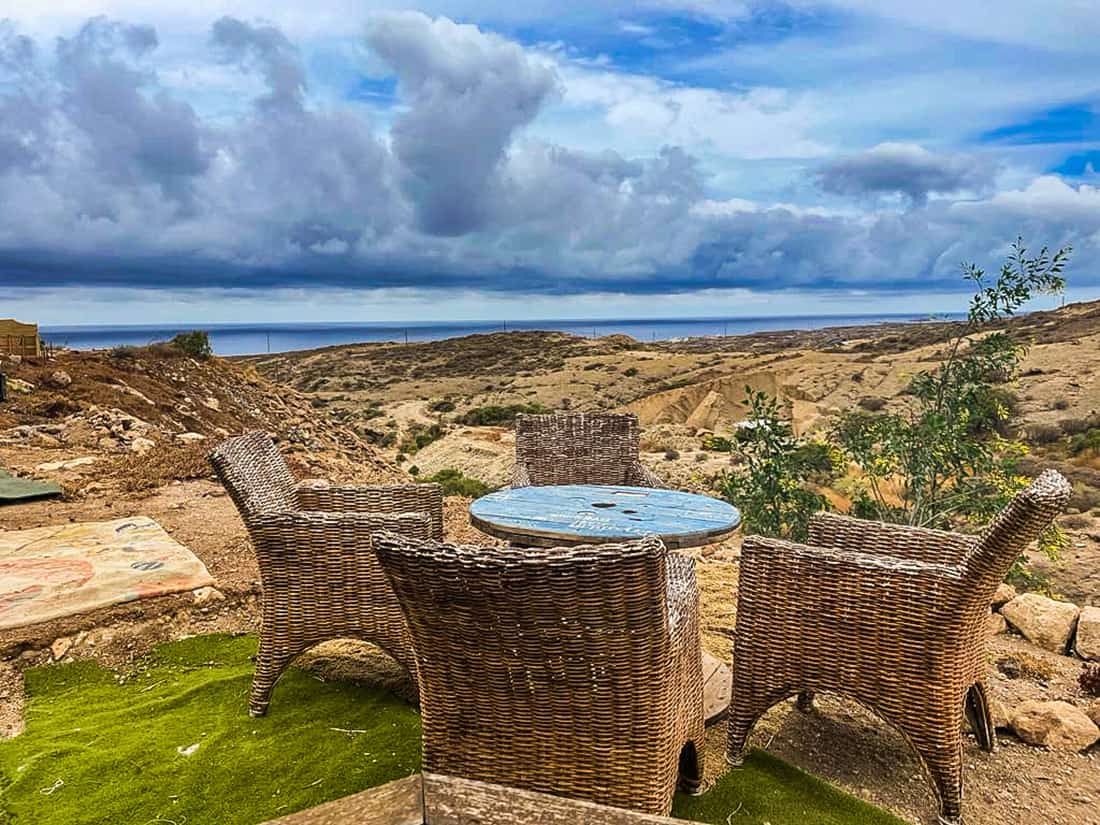 Located on the edge of a newer area which is the heart of community life. This stay is on the new land which we are still developing so there’s always something new and exciting going on. However some of the surrounding areas are still under development which can resemble a construction site at times. Although this doesn’t mean that privacy is an issue. Facing outward over the ravine you have your own secluded front porch with incredible views, a dining area and a sun lounger. Once in your private area you will not see or hear the work going on in the surrounding areas.