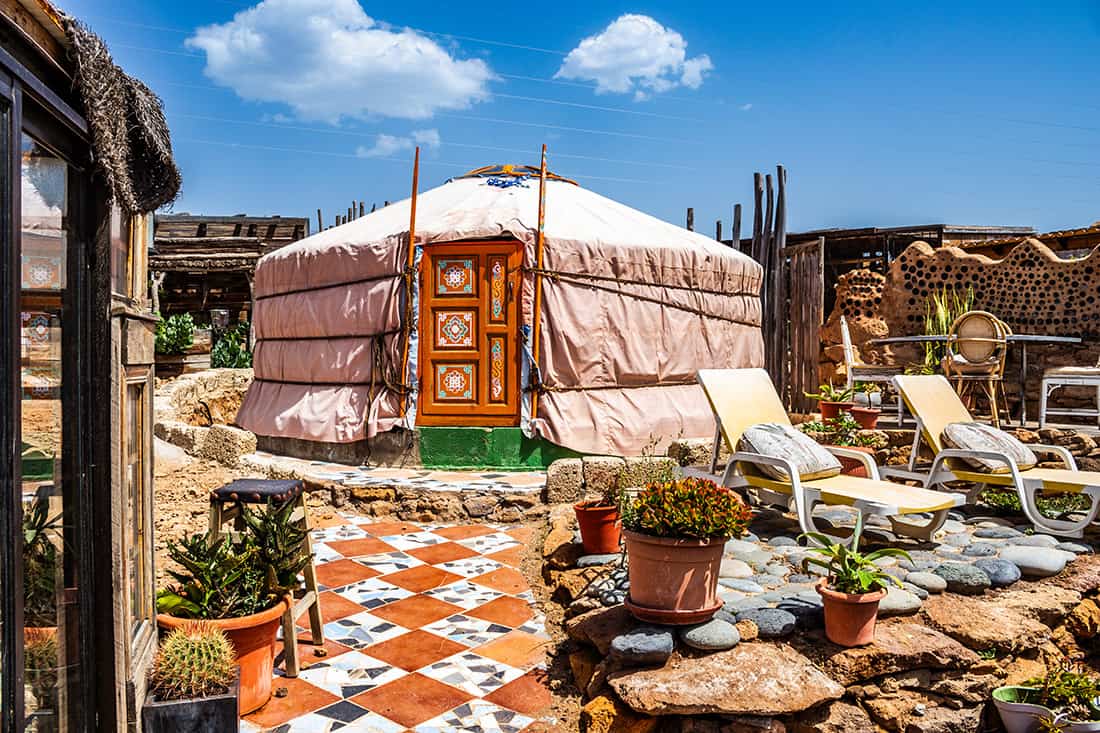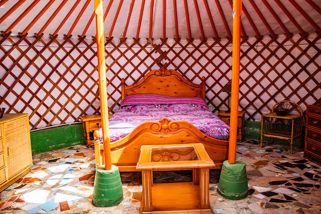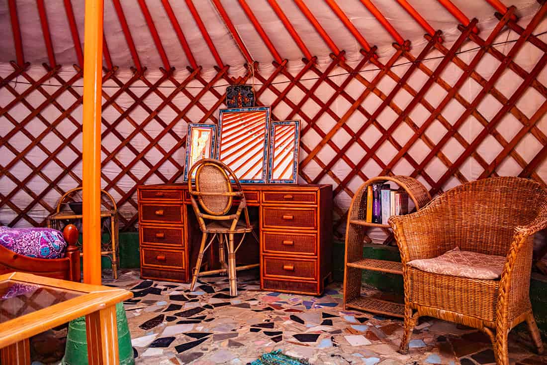 The Mongolian Yurt offers our most luxurious stay. This accommodation is situated in a private walled-off area near the small animals section in the sanctuary. You will have an entirely secluded section of the sanctuary, with a double bed inside the luxury yurt. This incredible area also boasts a second structure with a private bathroom, separate kitchenette and lounge area. The lounge area can also be arranged to accommodate a double bed which makes it a great option for families or a chance to have a stay with friends.