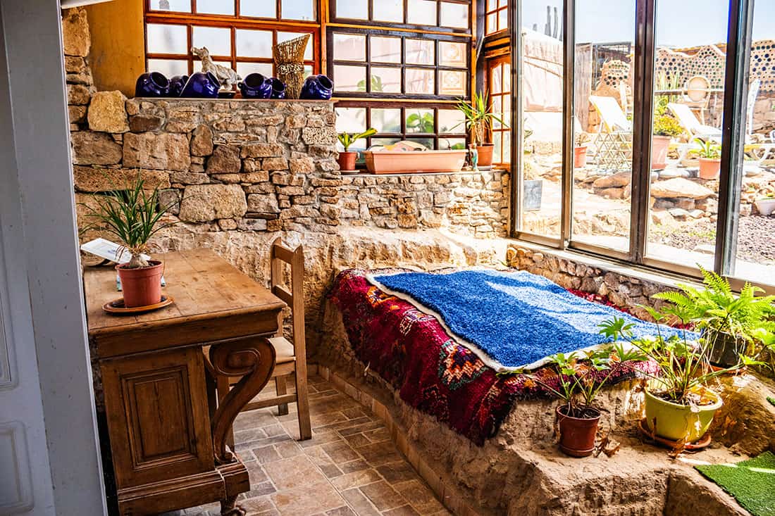 Whilst you are invited to join us every day for the community meals, you will have your own private fridge and a beautiful terrace. Even in the heart of the finca, it still provides a serene place to relax and unwind after your days. Everything has been hand built by our volunteers, from the painted doors to the glass mosaic floor. It really is the jewel in the crown of our finca and has been home to many international celebrities and influencers who have enjoyed a stay here.